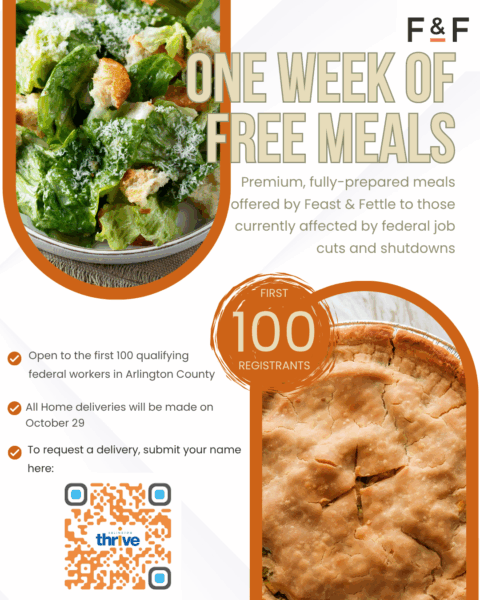 Since the government shutdown, nearly 7,200 furloughed federal workers have applied for unemployment benefits – leaving many struggling to keep up with expenses as paychecks are missed. At Arlington Thrive, we support our neighbors who have given so much to serve our communities. As current and former federal workers navigate this time of uncertainty, Thrive’s collaboration with Feast & Fettle removes one thing off a running list of stressful to-dos.